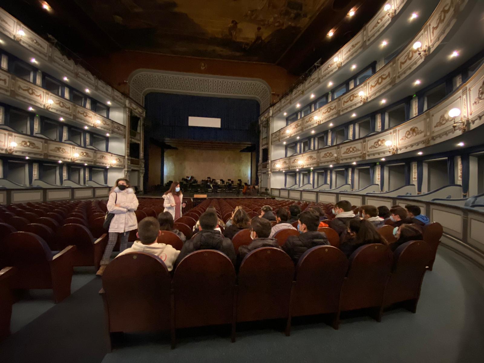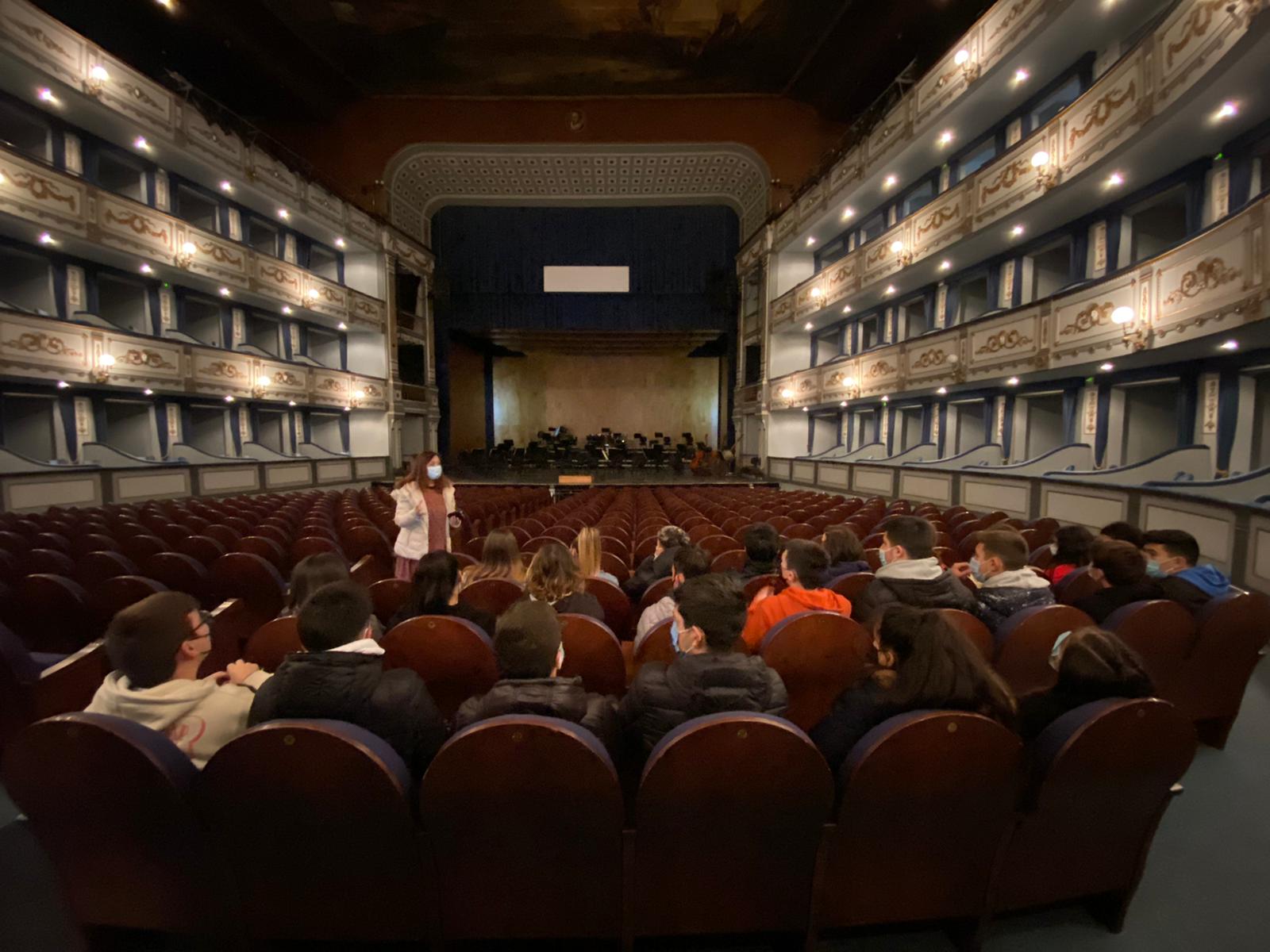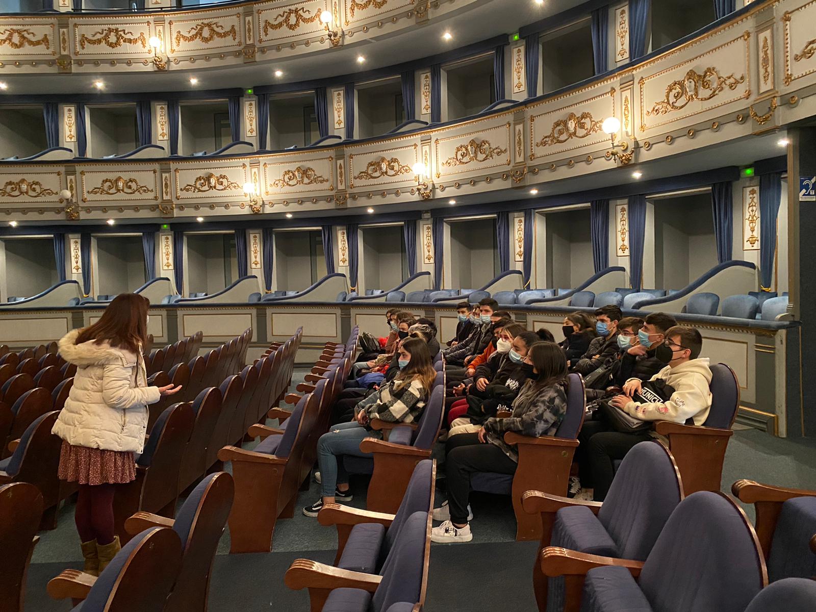 Ayer tuvo lugar un acontecimiento más que notable en nuestro instituto, y es que, tras más de año y medio sin actividades extraescolares por la pandemia, nuestro alumnado de 4º ESO realizó la primera salida al reconocido teatro Cervantes de la capital.